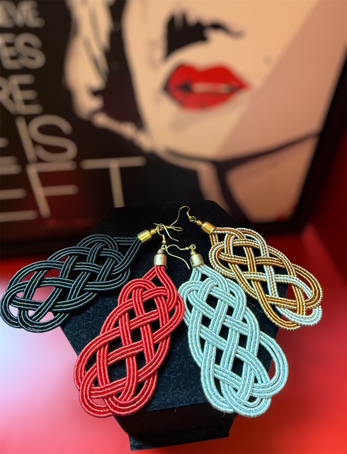 Flexible multi-strand earrings with a with brassy gold colored accent. Don’t forget the matching CEO Multi-Strand necklace.